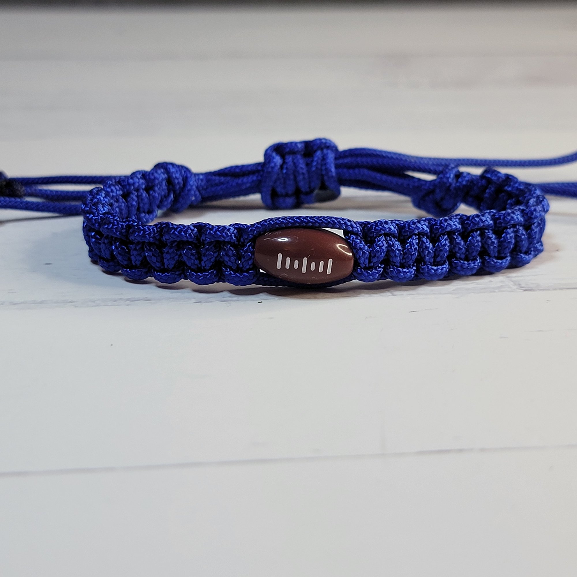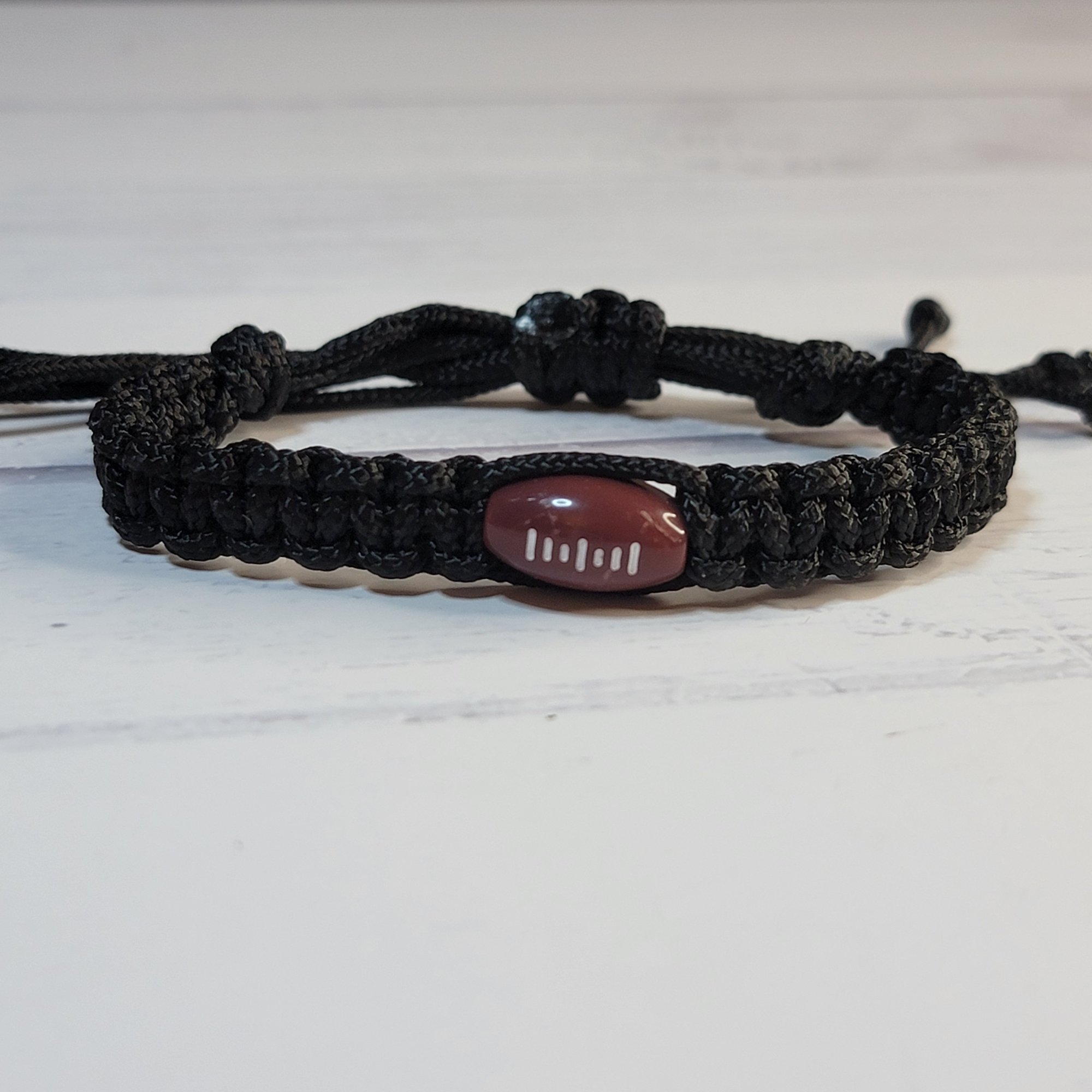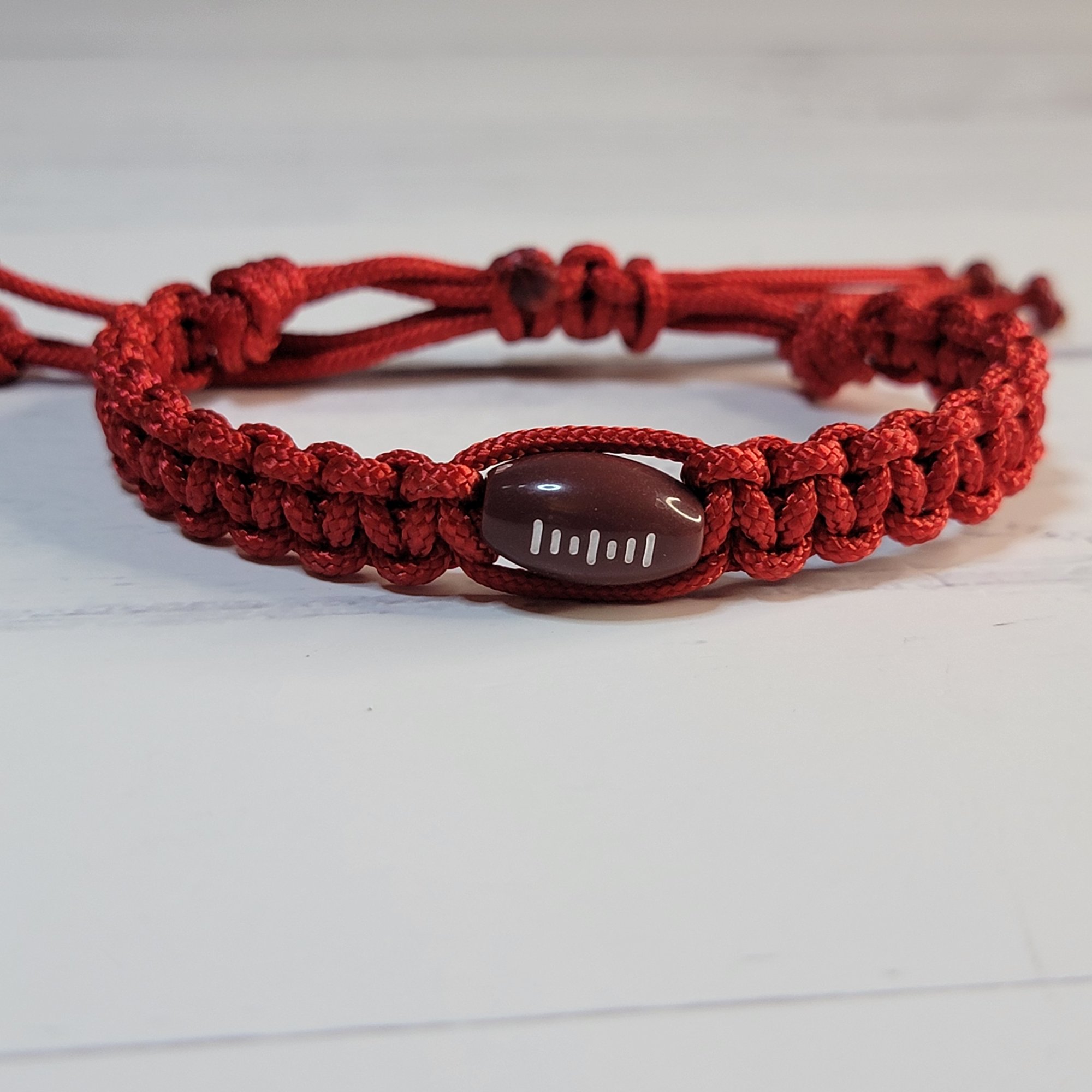 - An adjustable thin paracord bracelet featuring a football decoration. Perfect for fooball fans and great for party favors!
