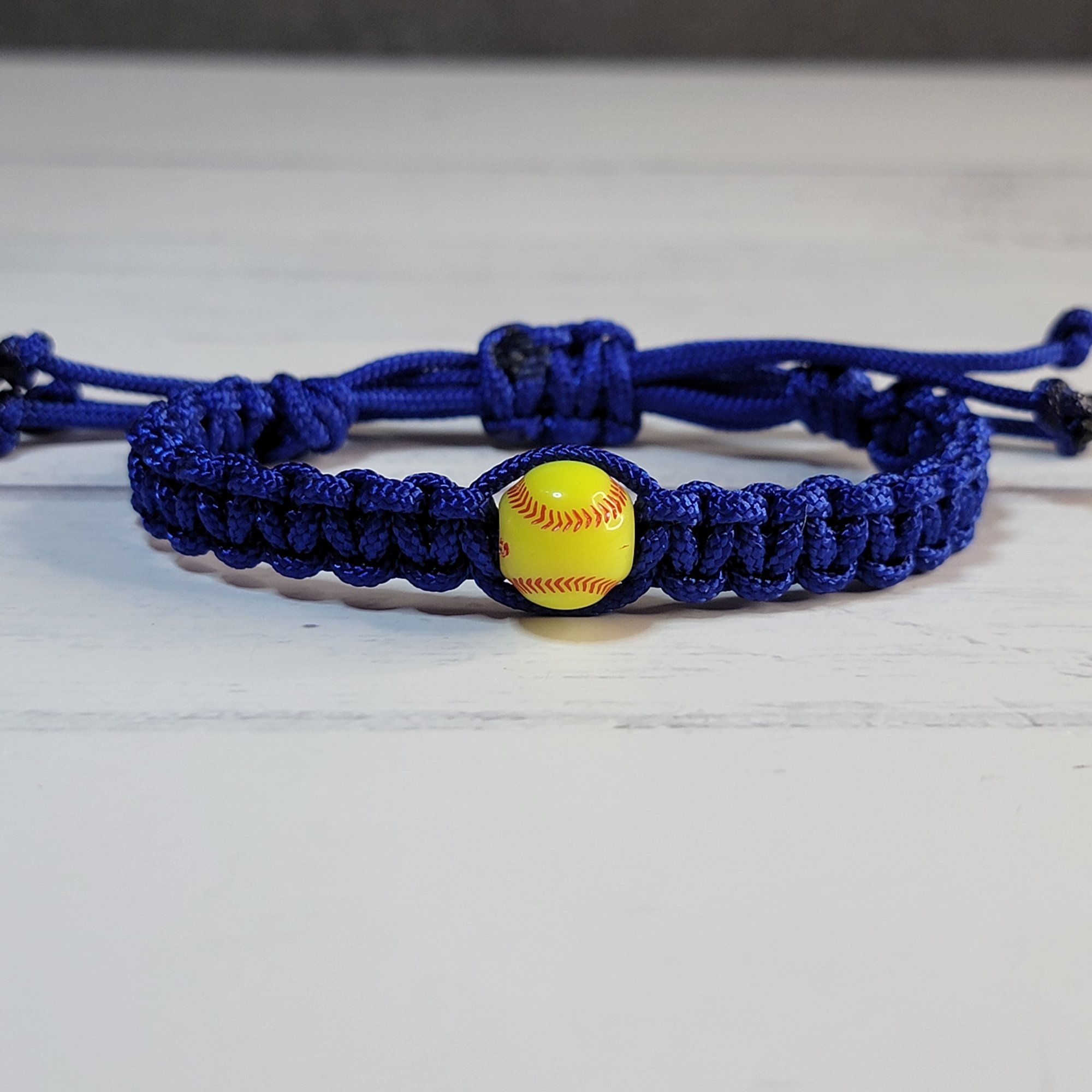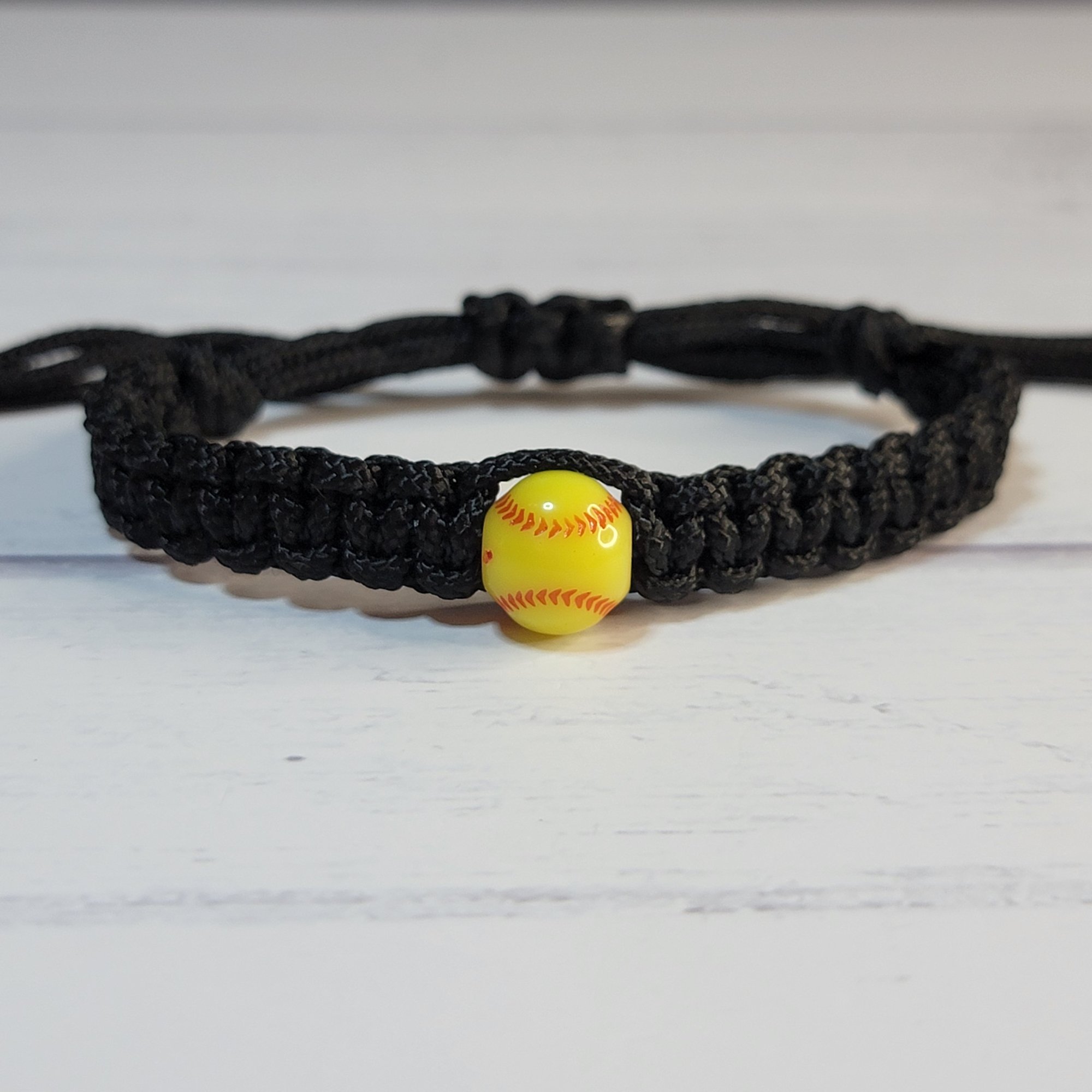 - An adjustable thin paracord bracelet featuring a softball decoration. Perfect for softball fans and great for party favors!